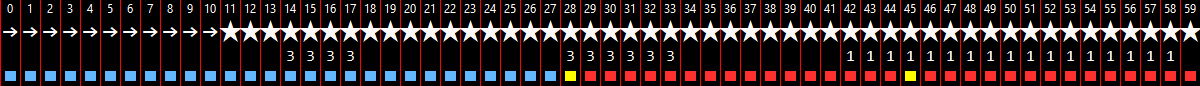 Note that for delays, the number is for the input window, not the actual move itself. In some cases these are the same. For example, take 3,3: